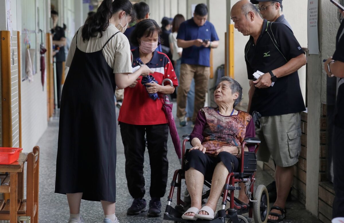 Taiwanese people go to vote at a polling station in Taipei, Taiwan, on Saturday to