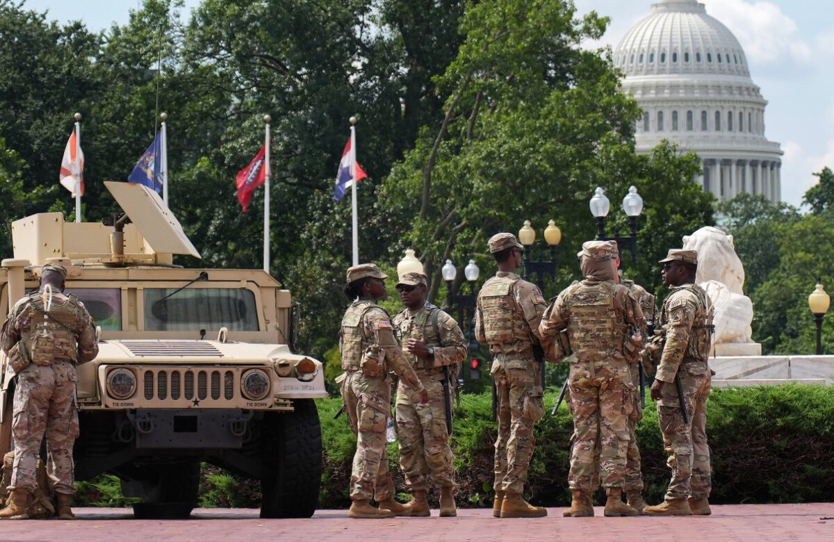 Members of the National Guard stand near D.C.’s Union Station, within view of the U.S.