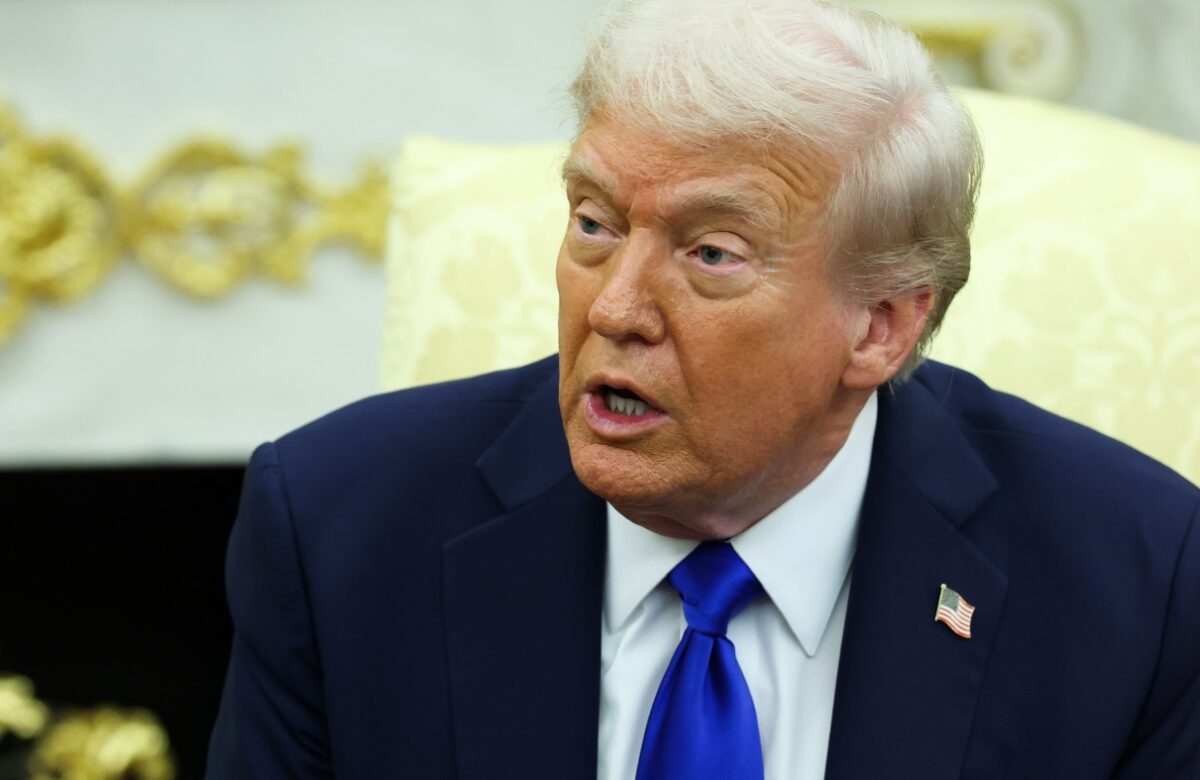 President Trump spoke to reporters in the Oval Office on Tuesday. Anna Moneymaker/Getty Images hide