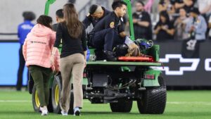 Angel City’s King ‘responsive’ after leaving field on stretcher