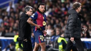 Barcelona have confirmed defender Jules Kounde suffered a hamstring injury in Wednesday’s 3-3 Champions League semifinal draw against Inter Milan, with sources telling ESPN he will miss the second leg in Italy next week.