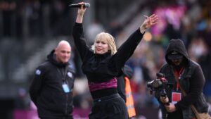As well as giving her surprise performance after the full-time whistle, Bedingfield, whose brother Daniel was also a successful singer in the ’00s, partook in celebrations with the Burnley squad where they sang “Unwritten” — the song which was the theme for the reality television series “The Hills.”