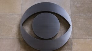 The CBS logo is seen on a building in Chicago. The network’s parent company, Paramount Global, has agreed to pay $16 million for President Trump’s future presidential library to settle a lawsuit he filed over the editing of a 60 Minutes interview with former Vice President Kamala Harris during last fall’s elections.