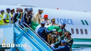 His body was flown back to the country earlier on Tuesday and his successor, Bola Tinubu, was at the airport in Katsina state to receive the remains.
