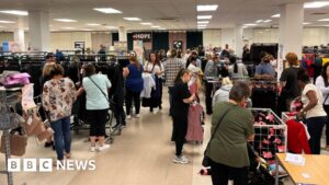 Jasmine DuFraisse/BBCFamilies have welcomed a charity-run £1 school uniform sale, saying “every little bit helps” with increasing costs of living.
