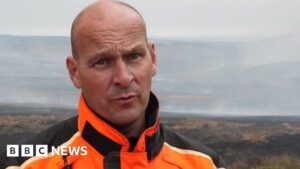 Oli Constable/BBCA firefighter has described a moorland blaze as the largest he has seen in his 31-year career, as he praised colleagues for their “tireless” work to get it under control.