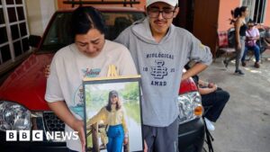 Standing before an impromptu altar adorned with flowers and photos of América Sánchez dressed up for her “quinceañera”, the party marking her 15th birthday, Ms Hernández paid tribute to her daughter.