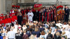 ReutersMourners are paying their respects to Pope Francis, whose body was moved from his Vatican residence to St Peter’s Basilica before his funeral on Saturday.