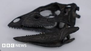 Gwyndaf Hughes/BBC NewsIn contrast, the NHM’s specimen was a sophisticated and near-to-complete skeleton with unique features including its leg bones.