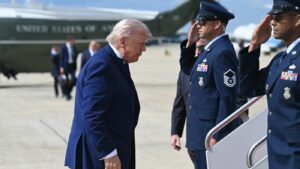 President Trump walks to board Air Force One prior to departure from Joint Base Andrews in Maryland on Friday en route to New Jersey for the weekend.