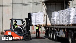 A video shared with the BBC showed the lorries with aid collected from Kerem Shalom driving in a convoy along a road in southern Gaza.