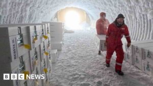 BBC News went inside the -23C freezer room at the British Antarctic Survey in Cambridge to see the precious boxes of ice.